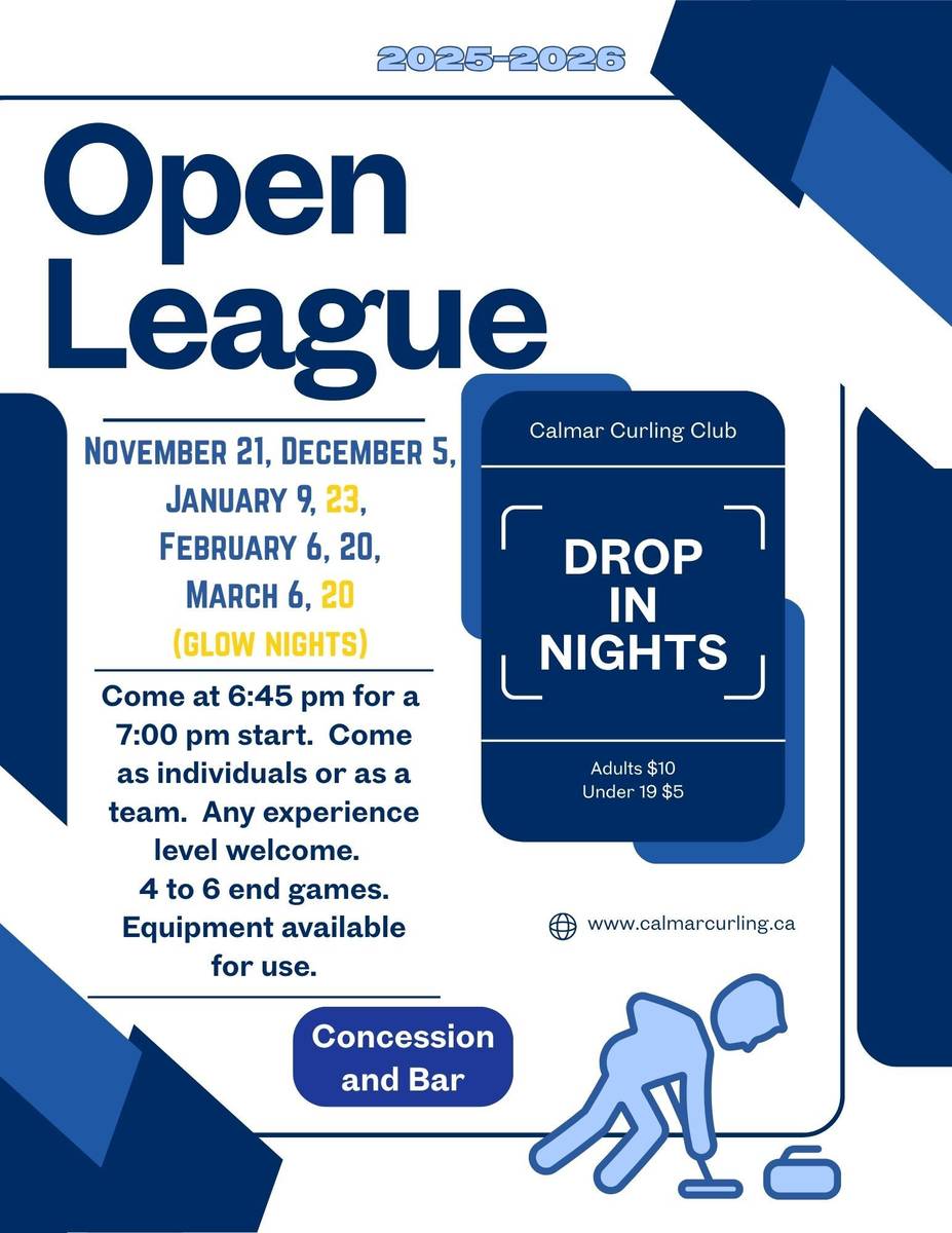 The 2025/2026 Calmar Curling season starts in October and runs until late March. Our 4 sheet rink offers some of the best ice you can get, with ice level viewing and lounge viewing upstairs. During our curling season, we also offer food and beverage service for our curlers and anyone else, including our loyal fans who come to watch!
